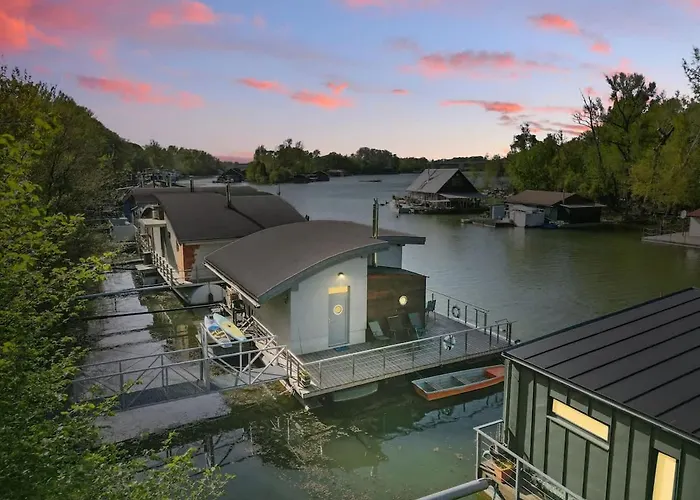 שוכן בעיר ברטיסלאבה, הוילה Sunset View Housboat With Sundeck,Ac&Heating זהו נכס בעל 1 חדרי שינה, כולל מרפסת עם נוף של נהר. Rusovsky park נמצא במרחק של 2.1 ק"מ, בזמן שMary זה כ-2.2 ק"מ מהנכס.
